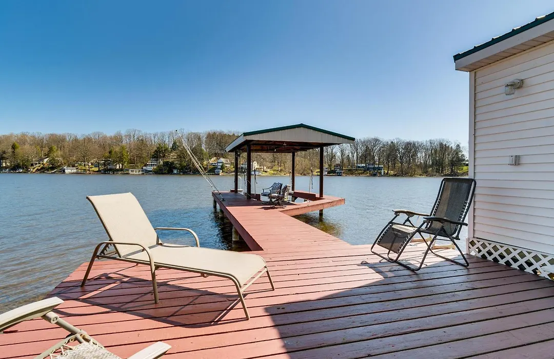 This accommodation is equipped with a microwave, a fridge, and kitchenware for self-catering in an outdoor dining area. The closest airport is Syracuse Hancock International, located 80 km from the 1-bedroom Waterfront Wolcott Vacation Rental With Deck And Views.